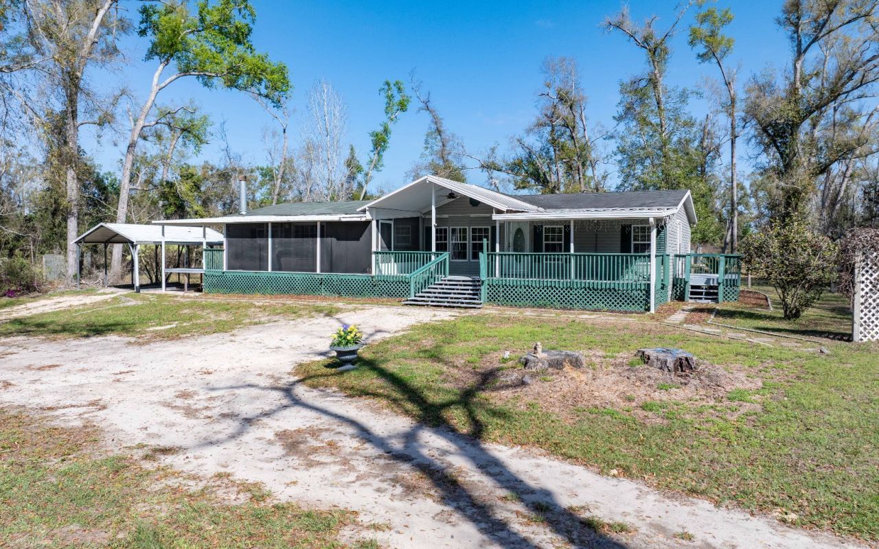 Escape to space, privacy, and the charm of river country with this spacious mobile home offering over 2,000 sq ft of living space on 6+ acres of beautiful land shaded by mature trees. Tucked into a prime location, just a short walk to the historic Suwannee River and Telford Springs, find yourself right in the heart of one of North Florida’s most beloved diving destinations. Take an easy stroll to the local dive shop or the Luraville General Store for lunch after a day on the water. Inside, the home offers a spacious layout featuring both a living room and a family room, giving plenty of space to gather. One of the living areas is highlighted by a cozy gas-burning fireplace, creating the perfect place to relax. The large kitchen provides abundant cabinetry and workspace, making it ideal for cooking, entertaining, or everyday living. Throughout the home, all flooring has been recently replaced, adding a fresh and updated feel. The oversized master suite is complete with a walk-in shower, garden tub, and a built-in makeup vanity for added convenience and comfort. Outdoor living shines here with over 800 square feet of covered porch space, including a large screened area. The impressive 38x30 metal building with concrete floors and 3-phase power, offers versatile space offers endless possibilities for a business, workshop, equipment storage, or hobby space. All of this is located less than 10 minutes from Mayo and only 20 minutes from Live Oak.
