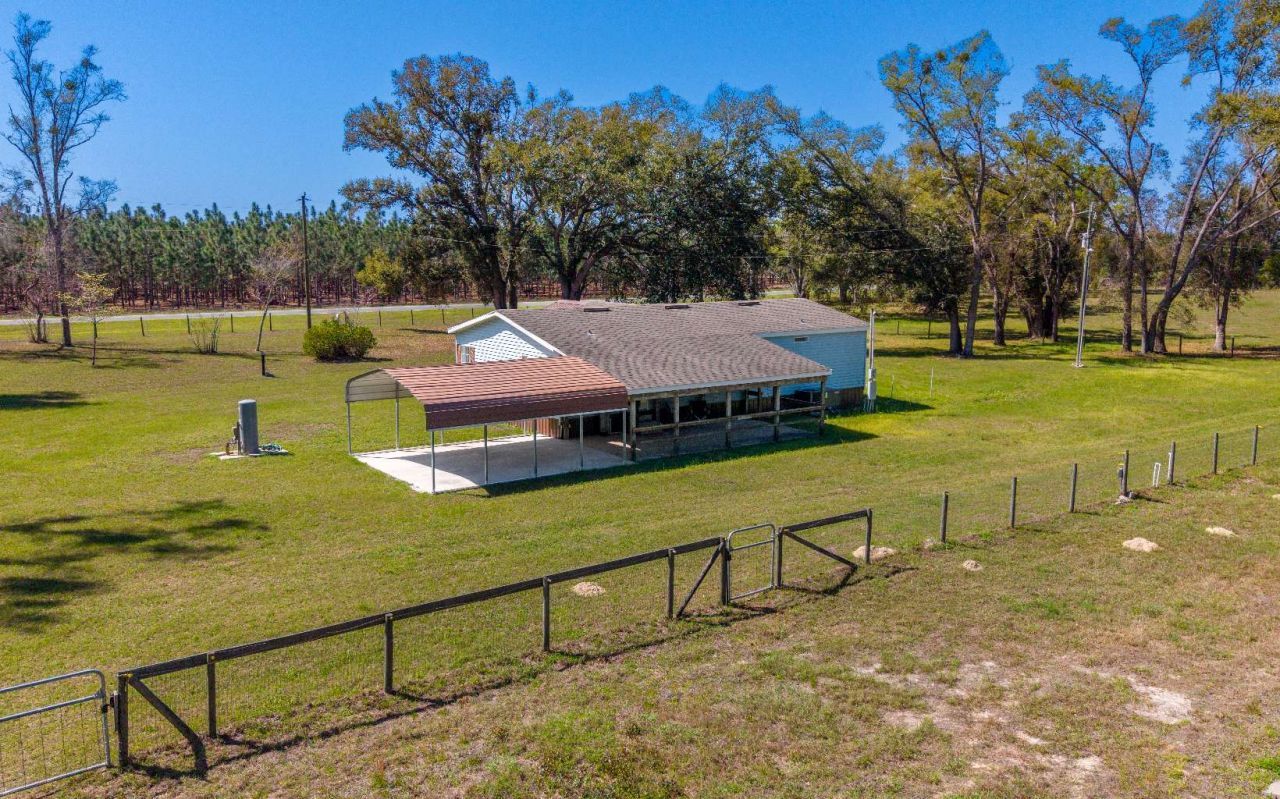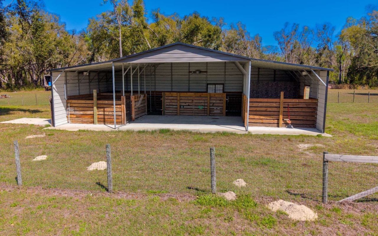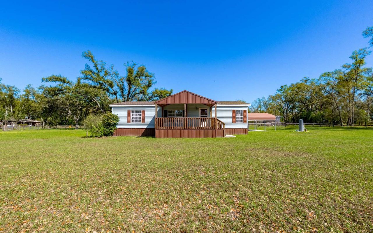 Horse Ready! This 3 bedroom, 2 bathroom home in Live Oak sits on 5 acres and has several recent updates already done! Inside, you’ll find new flooring and a new AC unit, along with a functional layout that includes a walk-in pantry and a dedicated laundry room. All bedrooms have walk-in closets, giving you plenty of storage throughout the home. Outside is set up and ready to go for animals. The property is fully fenced and cross-fenced with 3 paddocks. There is a 4-stall barn with concrete floors and rubber mats, along with a horse wash station. You’ll also find a concrete back patio, a front porch, and a carport offering plenty of room for outdoor gatherings and parking.