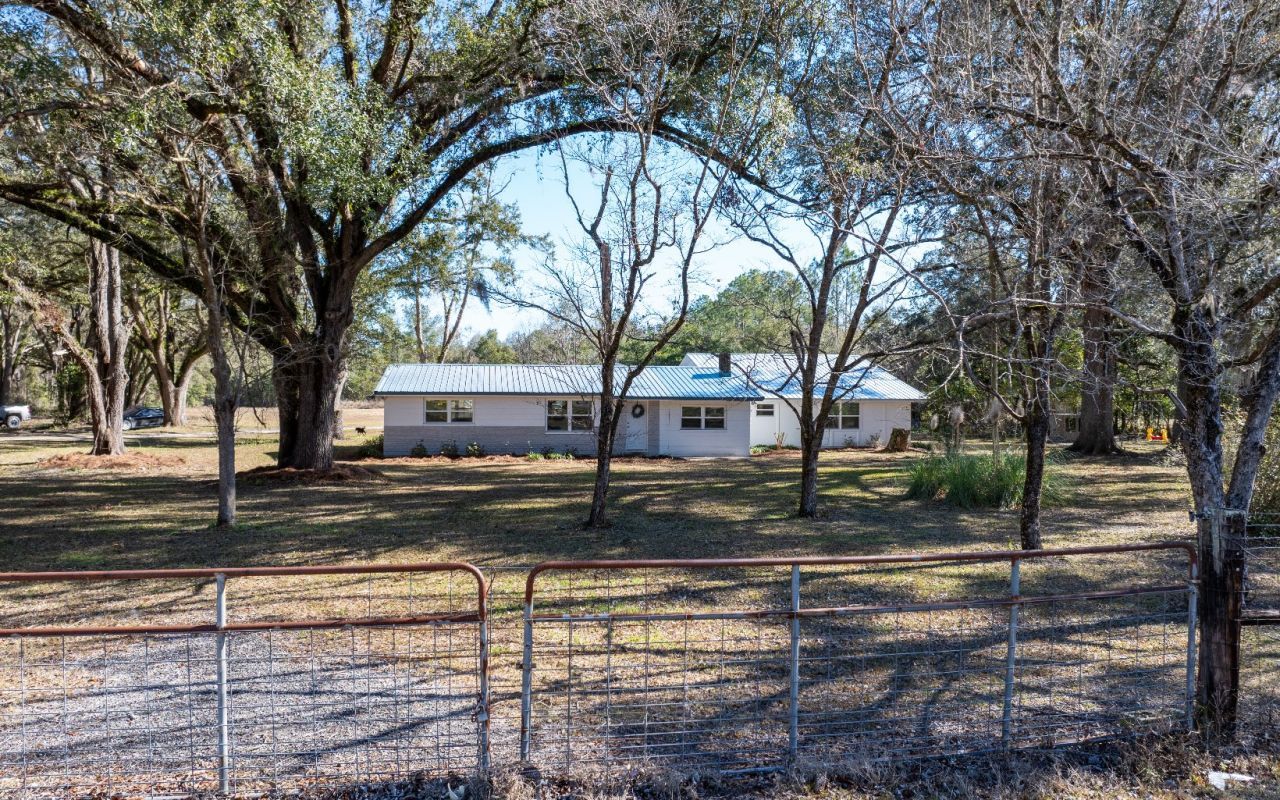 Nestled on nearly 5 acres of fully fenced property, this freshly remodeled home offers a perfect blend of modern updates and country charm. The property features two expansive pole barns, ideal for storing outdoor equipment, vehicles, or tools. The home itself boasts a metal roof and has been thoughtfully updated with new windows, flooring, cabinetry, countertops, HVAC, 2 water heaters and a newly added master suite. The split floor plan provides ample space, including a cozy living room, a family room, and a versatile bonus room that can serve as an office or playroom. The master suite is a true retreat, featuring a spacious layout, a custom tile shower, a double sink vanity, and a walk-in closet. The large utility room doubles as a convenient drop zone, complete with an additional oversized storage closet. With paved and dirt road frontage, this property offers prime accessibility—just five minutes from the charming town of Branford and a short 30-minute drive to Live Oak or Lake City. Whether you're seeking space, privacy, or convenience, this home has it all.