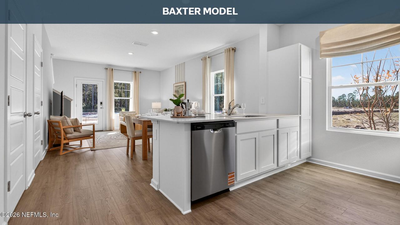 The Baxter townhome by D.R. Horton offers 1,340 square feet of thoughtfully designed living space with 3 bedrooms, 2.5 baths, and a 1-car garage, perfect for low-maintenance living with modern style. Drive up to a welcoming front porch that opens into a bright and inviting gathering room flowing seamlessly into the dining area. The space is perfect for enjoying the Florida afternoon. The open-concept layout makes entertaining easy and everyday living comfortable. The kitchen features a large bar with beautiful quartz countertops, providing plenty of prep space and additional seating for casual meals or hosting friends. A convenient powder room is located on the first floor for guests. The REV flooring is highlighted throughout the common areas. Upstairs, the spacious owner's suite offers a private bathroom and a generous walk-in closet, creating a relaxing retreat at the end of the day. Two additional bedrooms provide flexibility for family, guests, or a home office.