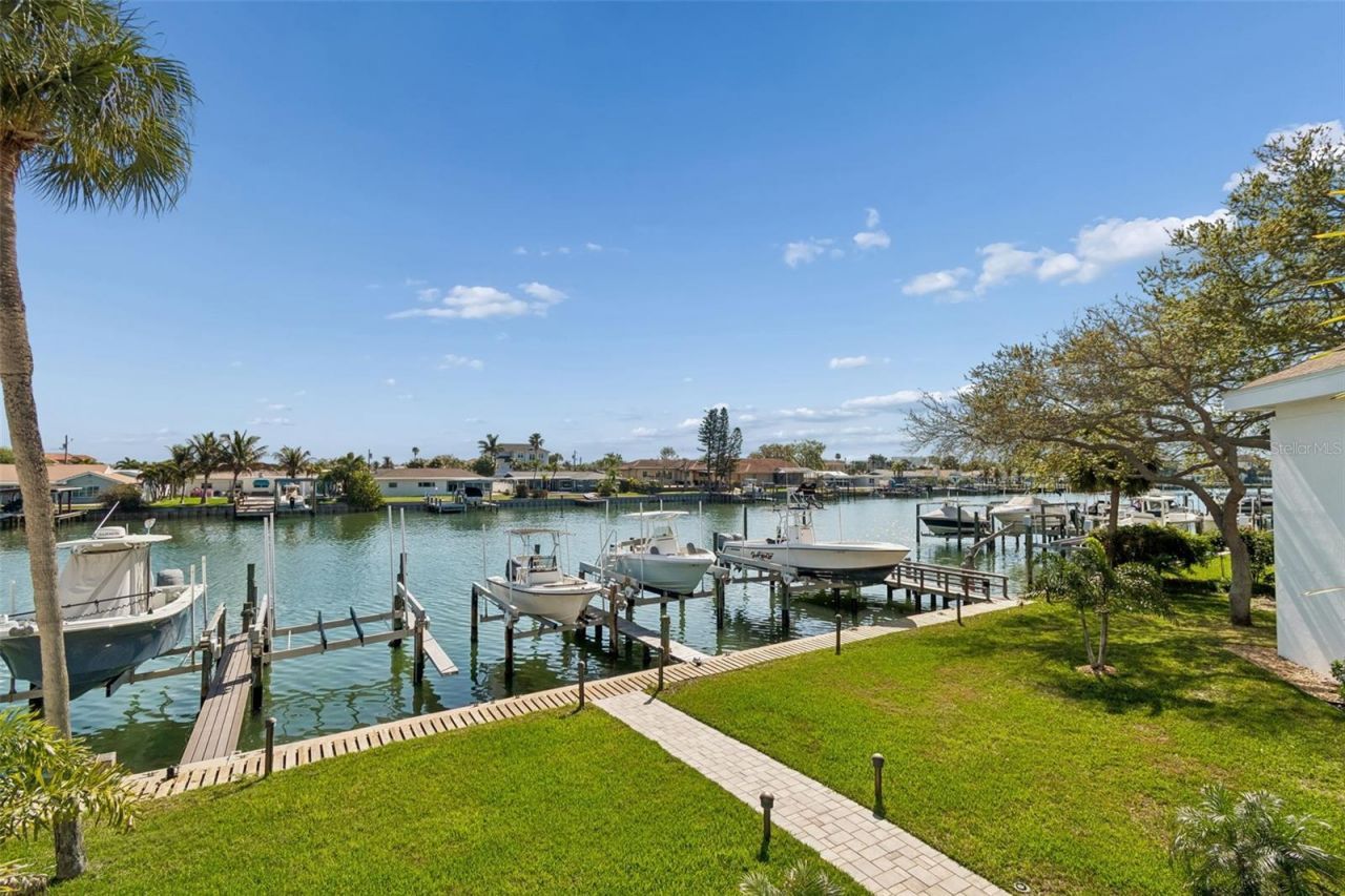 Welcome to Island Estates - where your boat is practically your second front door. This beautifully updated 2-bedroom, 2-bath condo offers 1,367 sq ft of coastal living with a deeded boat slip featuring a 10,000 lb lift with new motors and controller, accommodating vessels up to 30 feet - all just steps from home. Inside, you'll find brand new flooring, a newly updated kitchen with granite countertops, a brand new primary bath, plantation shutters, and two private balconies to soak in that Island Estates air. During the holiday's, you can enjoy the During the holidays, you can enjoy the annual Christmas boat parade from the comfort of your living room! The new central AC system (2024) keeps everything comfortable year-round. And for those looking for a truly seamless move - the unit may be available fully furnished, making this an effortless turn-key opportunity whether you're relocating, investing, or simply ready to start living the Florida dream from day one. The complex itself has been fully renovated - new flat roof (2025), new gutters and downspouts, new exterior lighting, fresh landscaping, and new stairs and rails - with all assessments paid through 2026. HOA covers flood insurance and water, and the quiet 8-unit building means you'll actually know your neighbors. Trolley stop right in front of Publix, a 3-minute walk to groceries, and Clearwater Beach just a short ride away. This is the Florida lifestyle; turnkey, low-maintenance, and ready for your next season.
