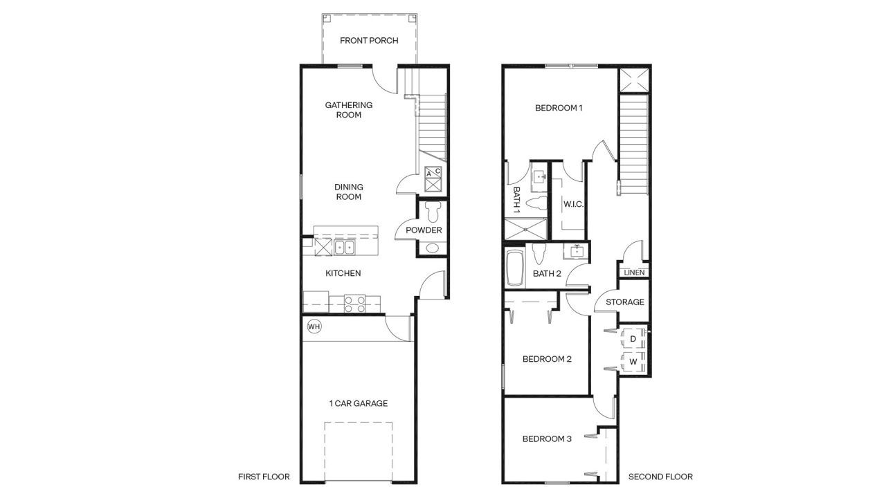 The Baxter townhome by D.R. Horton offers 1,340 square feet of thoughtfully designed living space with 3 bedrooms, 2.5 baths, and a 1-car garage, perfect for low-maintenance living with modern style.