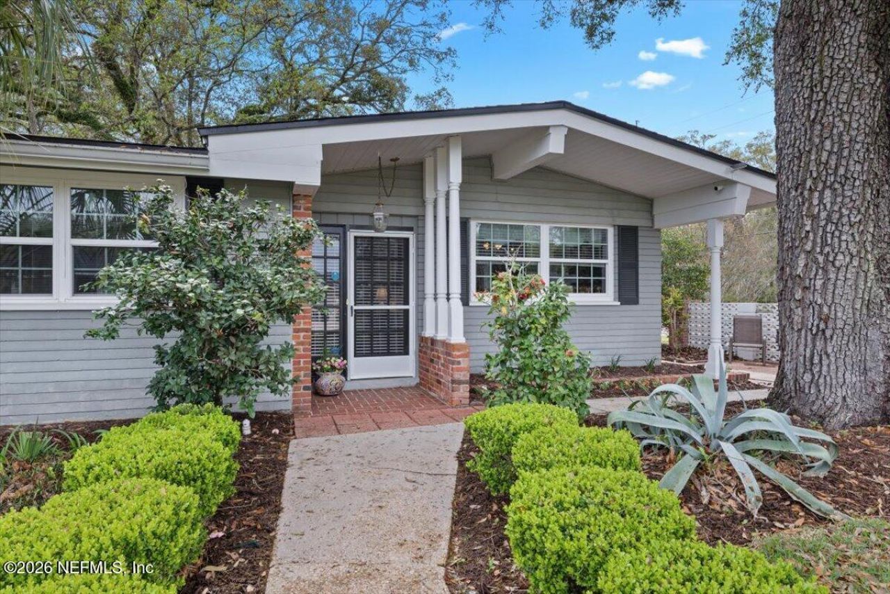 Welcome to this Ortega Forest gem - must see! This well-maintained 3-bedroom, 2-bath home with a two-car garage sits on a spacious corner lot in a desirable, established neighborhood. Inside, you'll find parquet floors throughout, abundant natural light, and a large open family/dining room that creates an inviting space for everyday living and entertaining. The adjacent brick-floor den with custom built-ins adds warmth, character, and flexible living space. The kitchen offers updated touches while maintaining the home's charm. The oversized lot provides a generous backyard with a covered brick patio, perfect for outdoor gatherings, while mature trees enhance privacy and curb appeal. Ideally located near shopping, dining, and everyday conveniences, zoned for A-rated John Stockton Elementary School, and just a short drive to NAS Jacksonville. Roof 2020, AC 2021, Water Heater 2021.