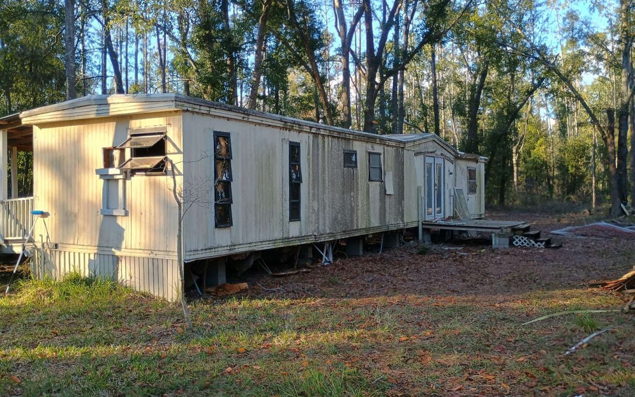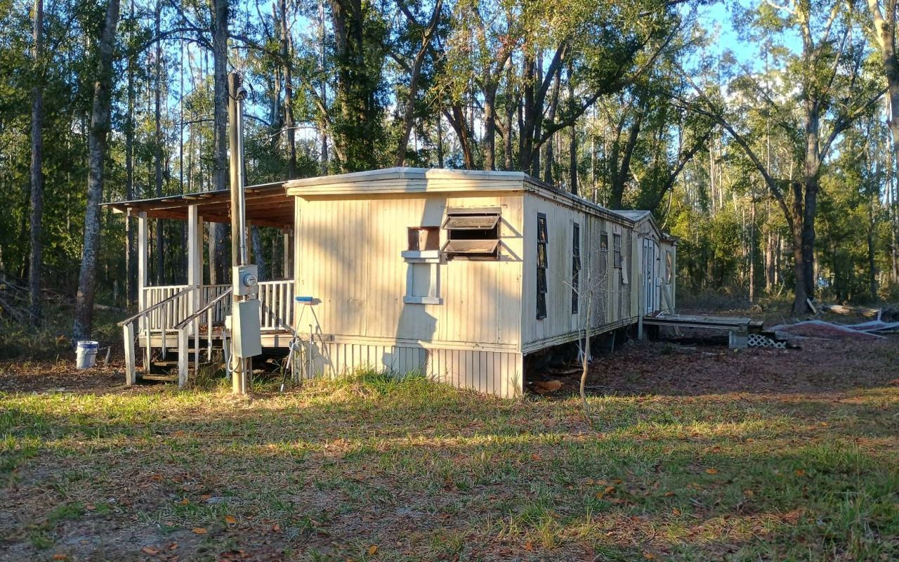 5 acre flag lot with older 2 bed 1 bath singlewide mobile home on property that has been stripped down to the studs and ready to be put back together. All utilities are in place and working as they should. Septic has been inspected. A 50 amp RV plug has been installed. There is also a brand new 8' x 20' metal storage container that does convey with the property. No HOA's! This property is not in a flood zone! See flood map in documents.